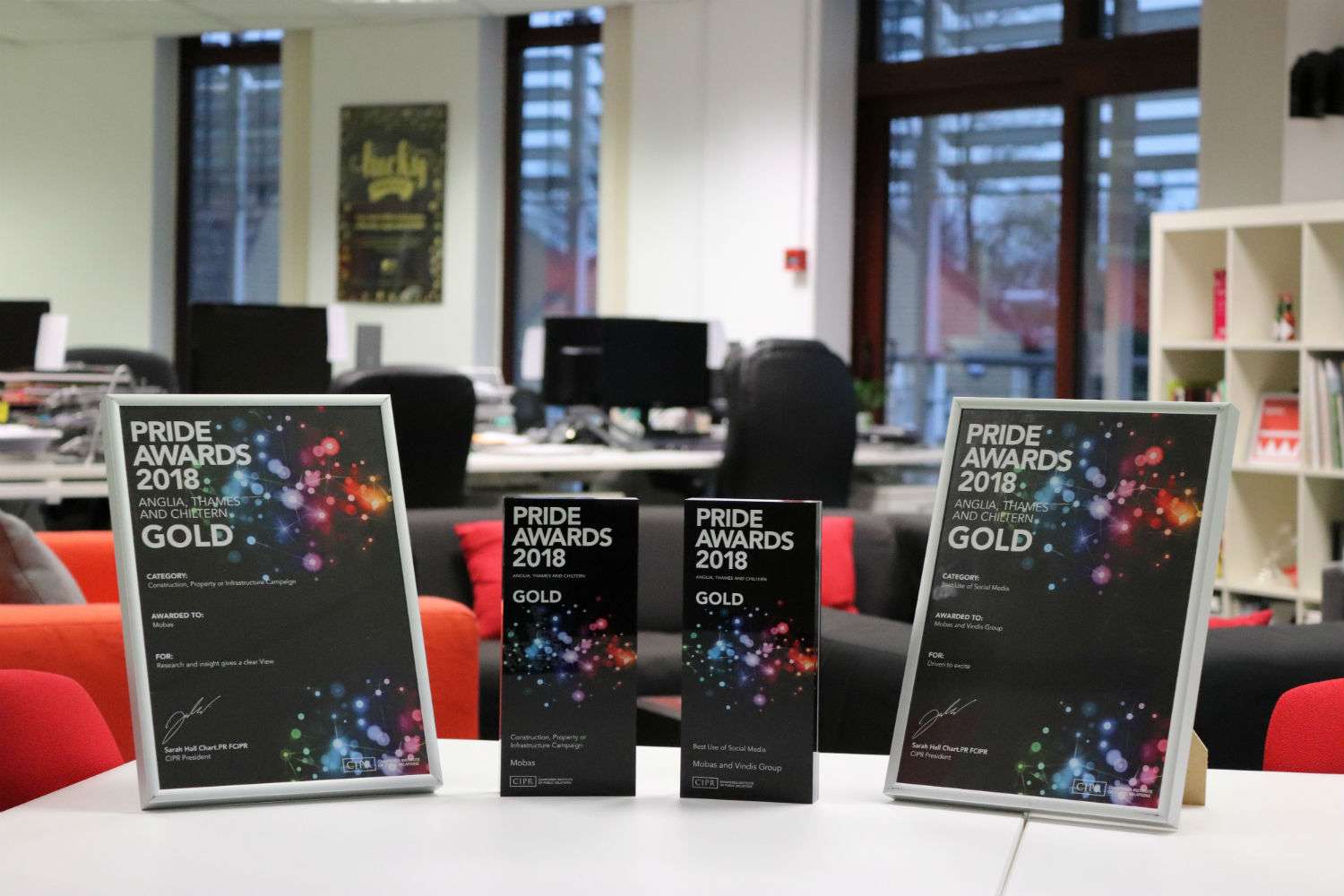 Competing against agencies across east anglia, thames and chiltern, Mobas left with gold awards for its construction whitepaper campaign with leading aluminium systems provider Reynaers and best use of social media with family-owned motor dealer group Vindis and their “Driven to excite” campaign.